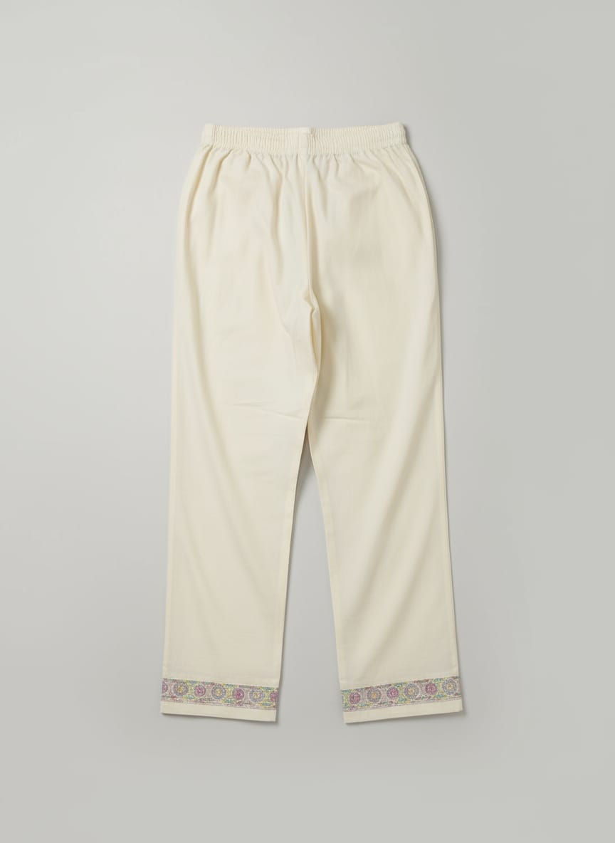This off-white pure cotton kurta set features intricate Schiffli embroidery work, adding delicate texture and elegance. The kurta showcases pastel-colored printed patterns at the center, complemented by a solid pant for a balanced look. Paired with a soft cotton dupatta, this ensemble offers breathable comfort and subtle sophistication, perfect for casual and festive occasions.