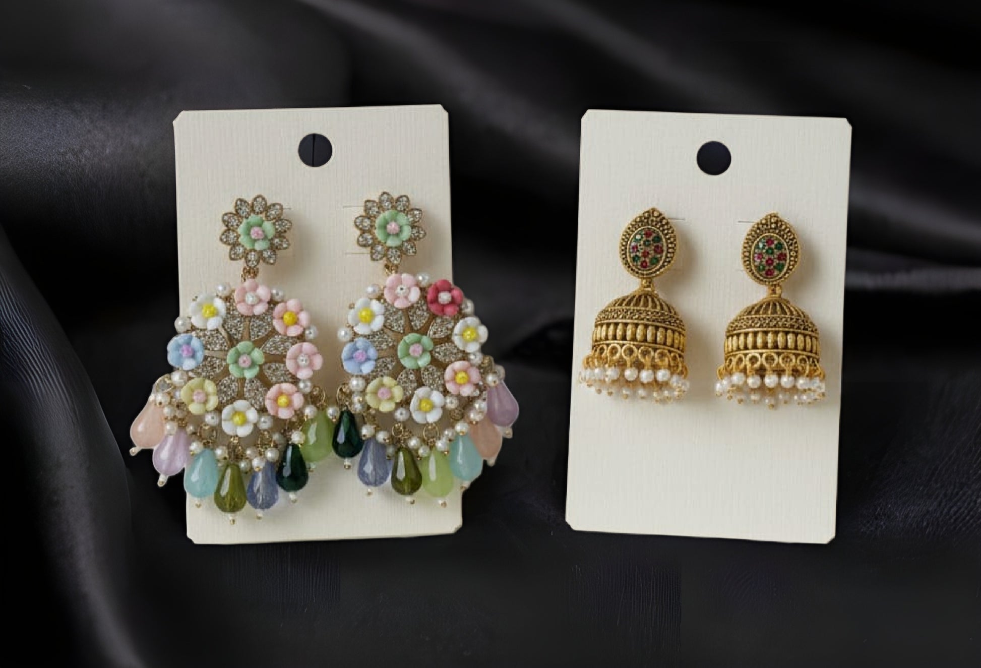 šø A blend of soft elegance and timeless charm! This Earring Combo features a floral pastel color dangler paired with a golden jhumki ā the perfect mix of modern grace and ethnic beauty. ⨠Delicate, versatile, and effortlessly stylish ā your go-to duo for every occasion! š
