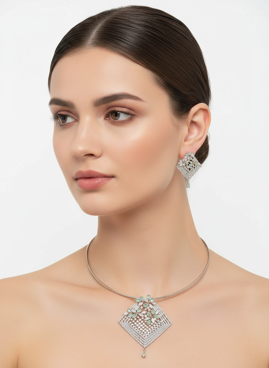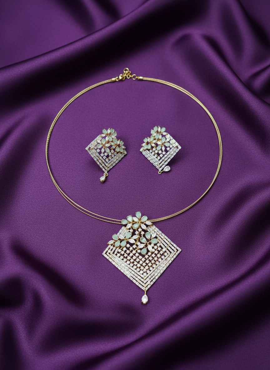 Contemporary Green Floral Pattern Diomond Hasli Set